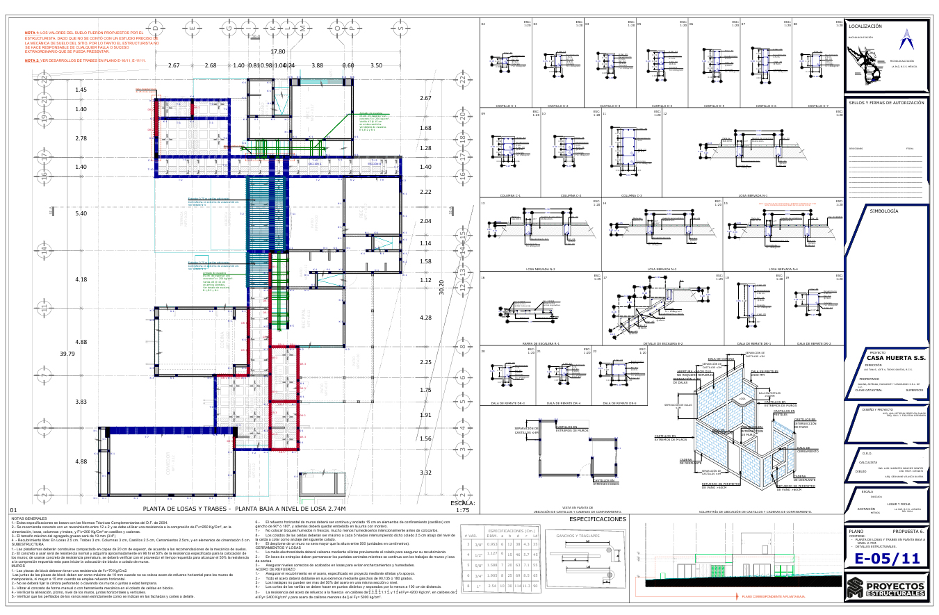 • Estructura: Muros de mampostería confinada y marcos de concreto armado
