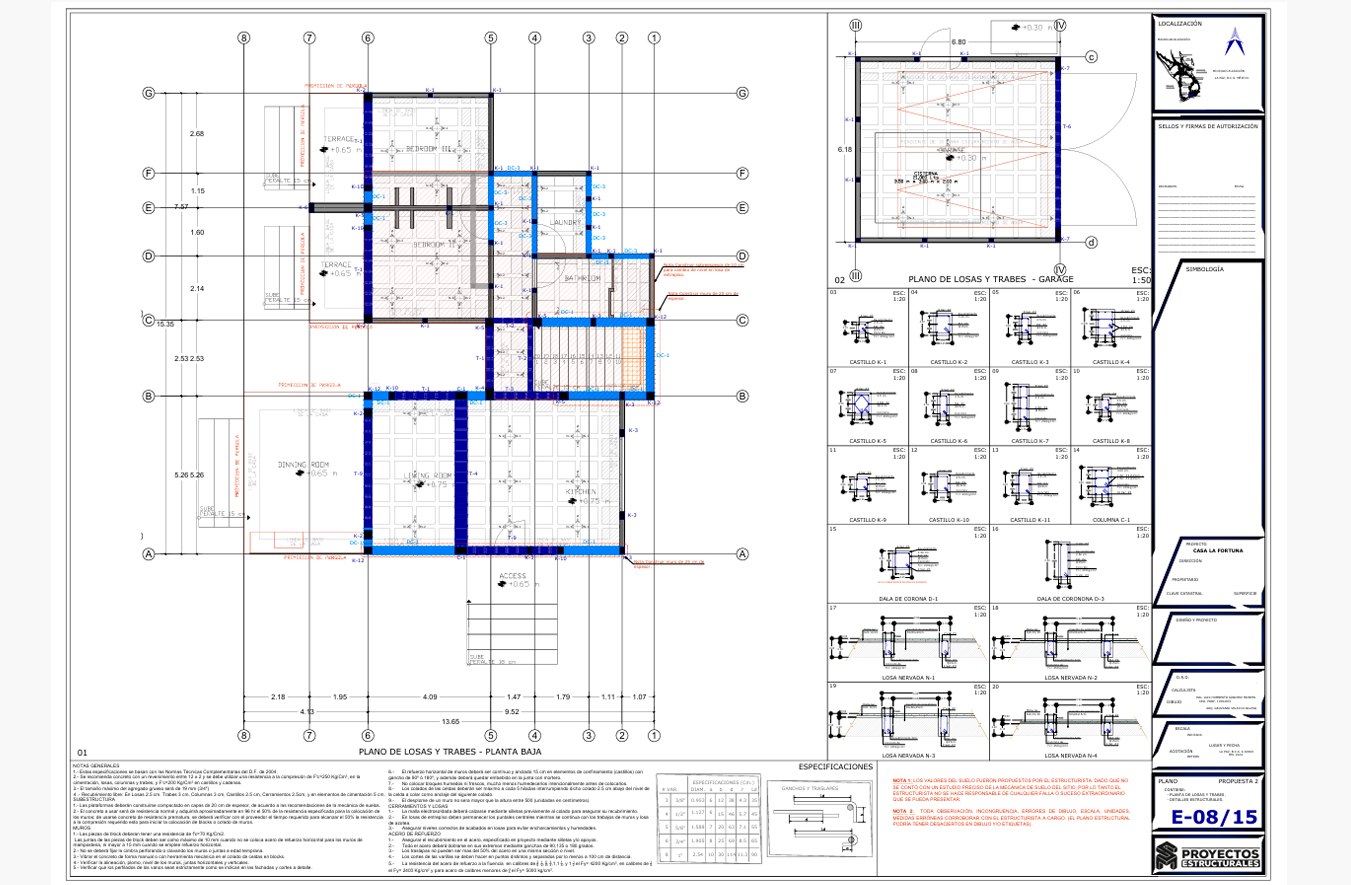 - Cimentación: Zapatas corridas y zapatas aisladas